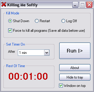 Cu Killing Me Softly iti poti programa calculatorul (PC/Laptop) sa se opreasca dupa o anumita perioada de timp.