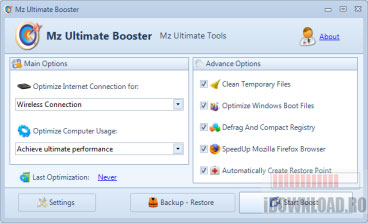 Mz Ultimate Booster optimizeaza performantele sistemului si conexiunea la internet, previne blocarea computerului si reduce timpul de pornire al Windows-ului.