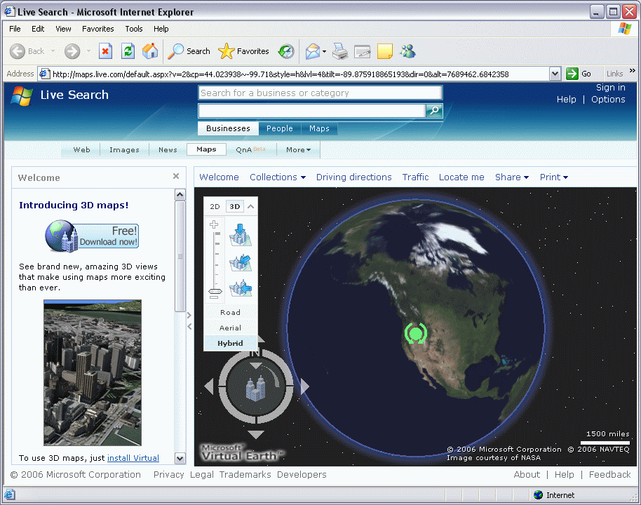 Cu Virtual Earth 3D puteti cauta, naviga si vizualiza lumea in trei dimensiuni - 3D.