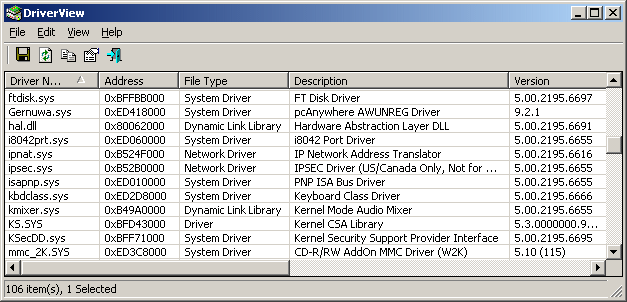 DriverView afiseaza o lista cu toate driver-ele instalate in computer.