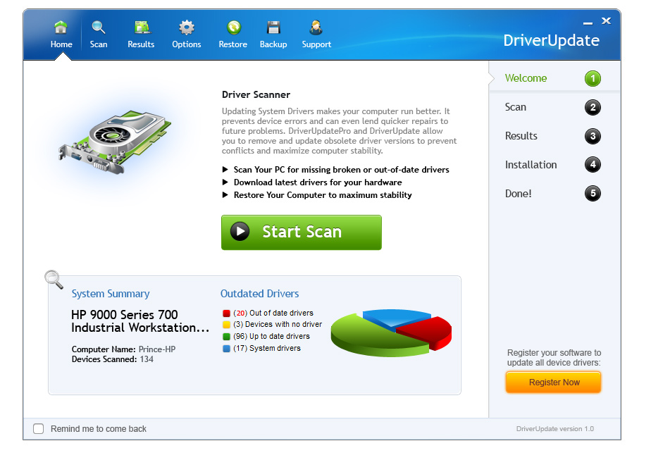 SlimDrivers scaneaza computerul, identifica driverele instalate si ofera solutii pentru actualizarea lor sau pentru instalarea unor alte drivere.