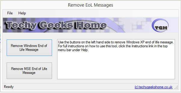 Cu Remove Windows XP End of Life mesajul "de expirare" din XP nu va mai aparea.