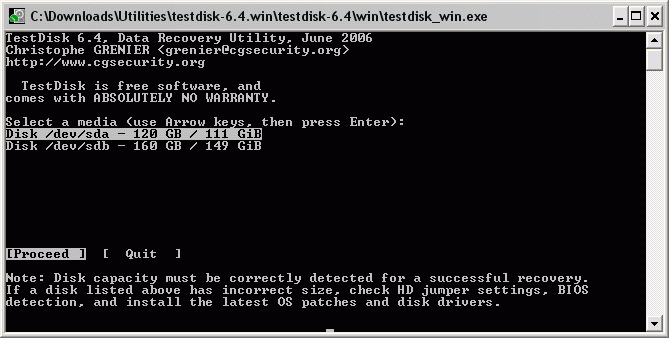 TestDisk este un program gratuit ce interogheaza BIOS-ul ( DOS/Win9x) sau OS-ul ( Linux, FreeBSD) pentru a identifica Hard Disk-urile si caracteristicile lor ( marimea LBA si geometria CHS).