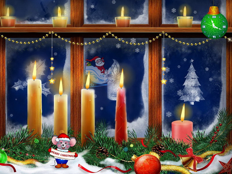 Christmas candles va prezinta o scena tipica de Craciun: lumânări aprinse înconjurate de globuri frumos colorate si decorațiuni din brad, toate acestea lângă o fereastra înghețata prin care se vede ninsoarea de afara.