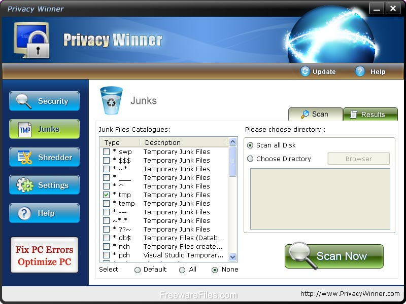 Privacy Winner recupereaza spatiul de pe hard disk, poate mari viteza si performanta computerului prin curatarea fisierelor nefolositoare sau temporare
