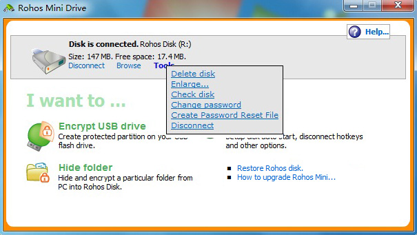 Cu Rohos Mini Drive puteți păstra pe un stick USB orice fișier important (documente, poze, filmulețe) fără să existe pericolul ca cineva sa îl vadă din greșeala sau dacă pierdeți stick-ul.