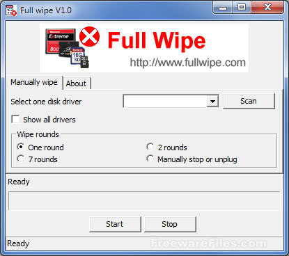Full Wipe este un program ce poate șterge definitiv toate datele de pe carduri de memorie, stick-uri USB, hard-uri portabile.