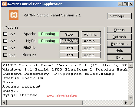 XAMPP face usoara instalarea serverului Apache si contine MySQL, PHP si Perl. XAMPP este chiar foarte usor de instalat si de folosit - doar descarca, extrage si porneste.