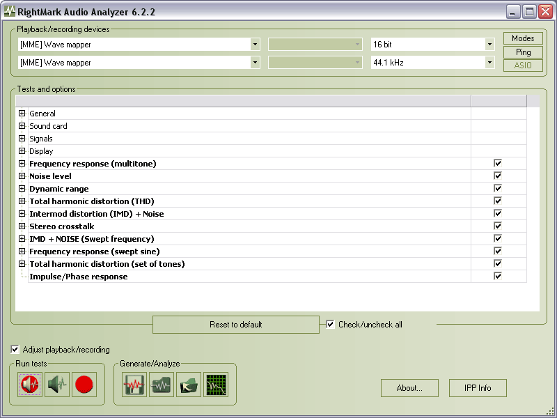 Suita RMAA este realizata pentru testarea calitatii cailor analogice si digitale ale dispozitivelor audio, fie o placa de sunet, un player