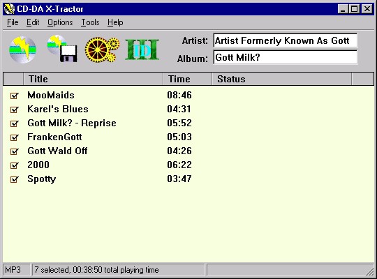 CDDA X-Tractor permite extragerea si comprimarea muzicii de pe cd-uri audio in fisiere de tip WAV,OGG si MP3. Programul are functii de jitter corection si CDDB ("Compact Disc Database": download-area automata a datelor despre melodia curenta: autor, nume melodie, album, etc din bazele de date de pe internet.)
